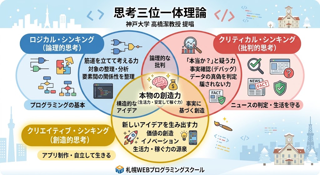 NEW! 創造力育成と起業の仕方 創造力は事実の真偽を判定する理解力が土台です。創造力の思考三位一体理論。創造力こそ稼いで安定することの源泉だった! 2026年4月7日 創造力をパワーアップ! 「思考三位一体理論」で未来を切り開こう ◆この記事は小中高校コースの最新の記事をこちらにも載せたものです! みなさん、こんにちは! 今日は、創造力って何の役に立つの?と疑問を持つ人へ、起業して成功するのがそうなように、実は創造力こそ稼ぐ力の源泉!なことを説明するね! こちらの図を見て下さい... 白いハヤブサ